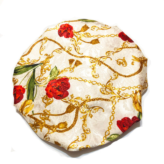 Gold Link Reversible Satin Bonnet - White