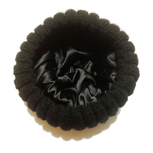 Adult Cashmere Satin Lined Beanie Hat - Black