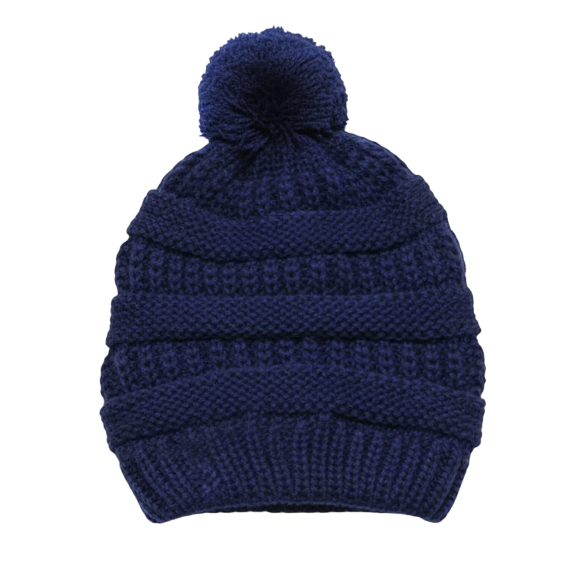 Kid's Satin-Lined Pom Knit Hat - Navy