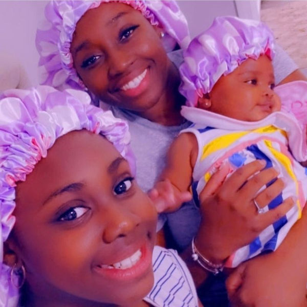 See how real families use our satin-lined bonnets, hats, and pillowcases to lock in moisture and prevent damage.
