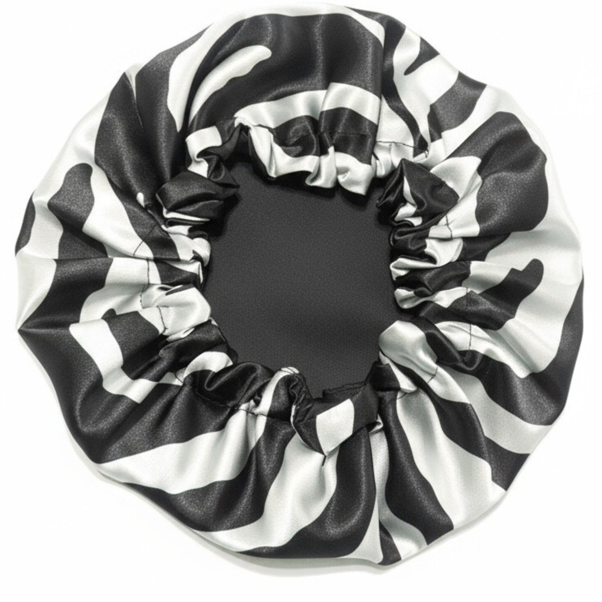 Upgrade your nighttime routine with our Reversible Charmeuse Satin Bonnet in bold zebra print. Available in multiple eye-catching colors and sizes, this bonnet is designed to protect your natural hair while you sleep, lounge, or prep your styles. Whether you're maintaining curls, braids, locs, or a blowout, our double-layered satin bonnet helps lock in moisture, reduce frizz, and minimize breakage for healthier hair over time.